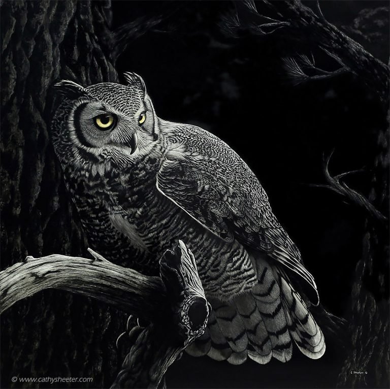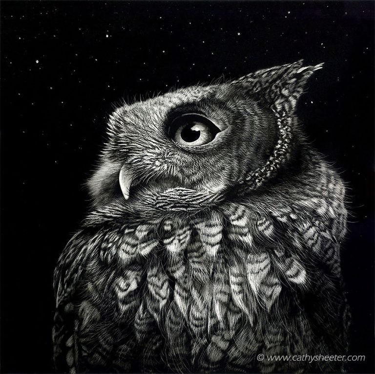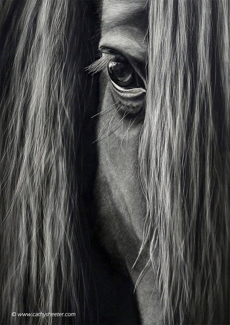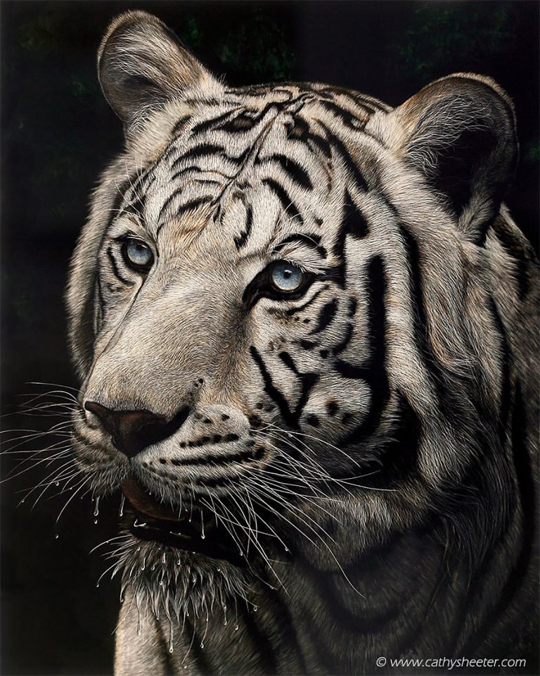 美国艺术家Cathy Sheeter在油墨涂布的纸板上创作逼真的划痕图。
