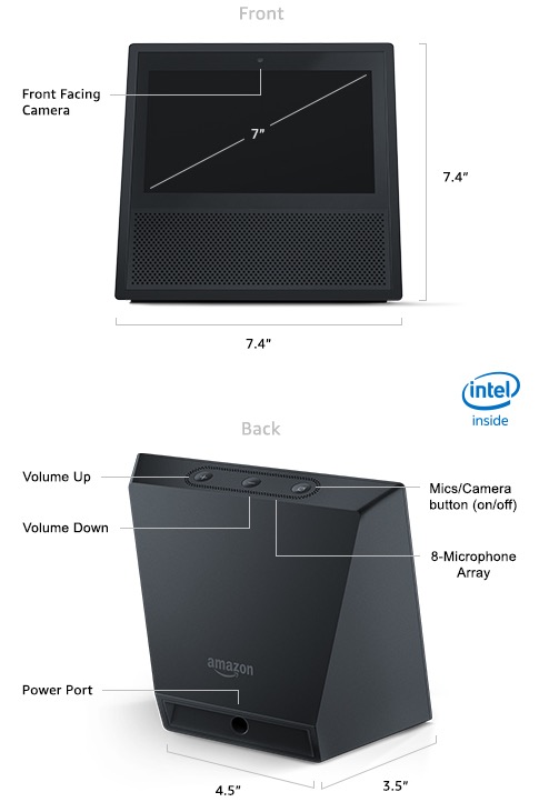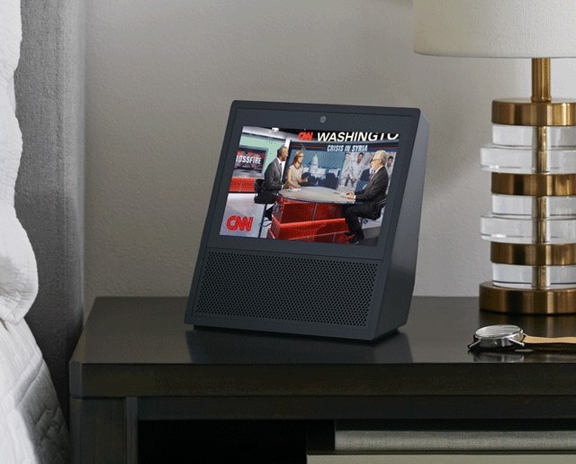 播放器,还承载了家庭通信中心的角色,堪称家庭智能百宝箱。Echo Show采用三角锥形设计,前脸配备了支持触摸操作的7吋屏幕,以及摄像头。此外,Echo Show搭载8麦克风阵列,可以监听用户在较远距离的语音指令,同时还支持降噪技术。有意思的是,Echo Show还可直接访问亚马逊Prime Photos中的图片,这意味着它具有智能相框的功能,它还可以与智能摄像头连接监控家里的不同角落。