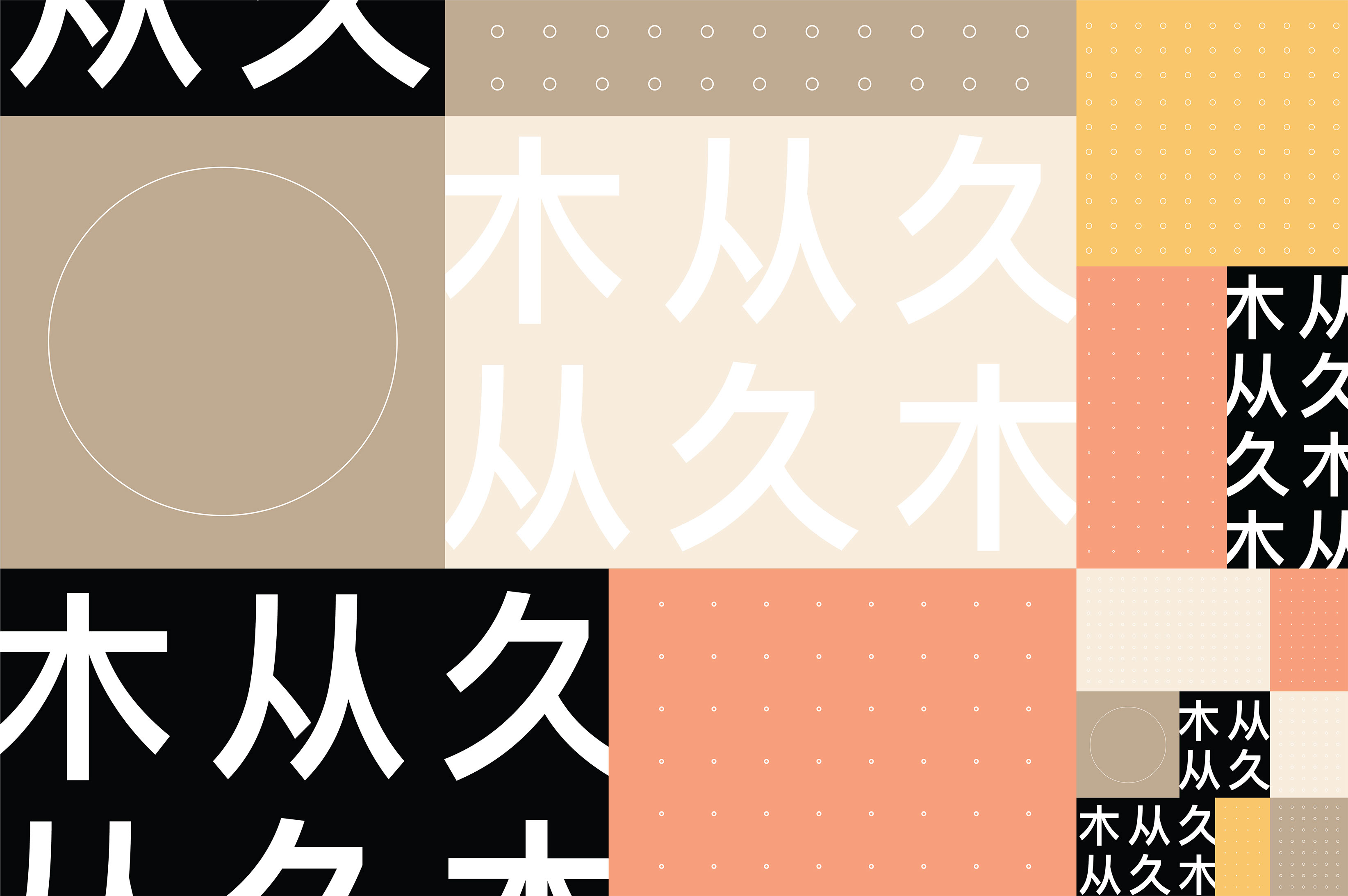 ori.studio 受托为此项目设计了整体品牌的视觉传达。logo本身抽象地表达了Teaspira的聚集感,同时,内部所带有的微妙的移动感也抽象表达了一杯茶的搅拌与融合过程。品牌的颜色的创立受到产品本身配料的启发,从较为冷静的代表纯茶的色彩到较为鲜艳的果茶色彩,彼此平衡搭配,在不同情况中具有极高的灵活使用性。在此基础之上,我们创立了一套具有两种元素的纹理系统,其一,为一系列简单并具有网格系统的圆圈。其二,运用Teaspira的中文名 ’木从久’ 作为纹理,简洁醒目的中文文字结合较为安静的圆圈网格系统,达到一个平衡与和谐的最终组合。