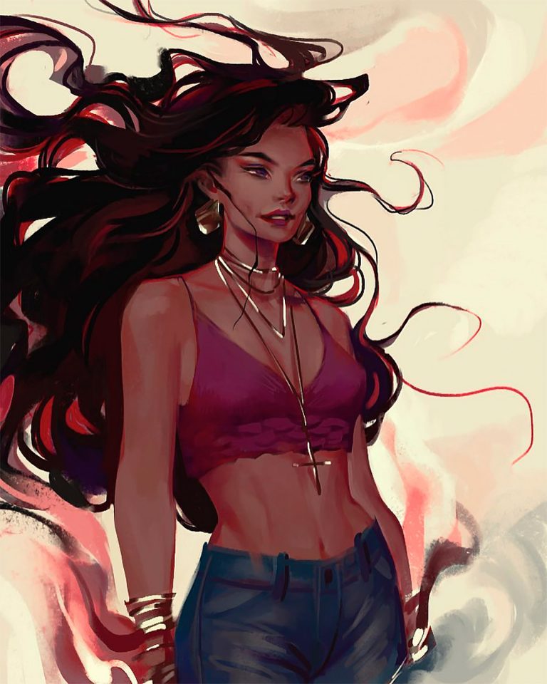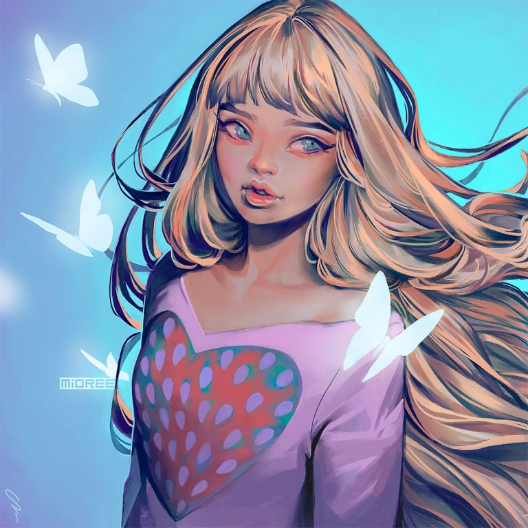 伦敦艺术家Mioree的女孩的可爱数字插图。