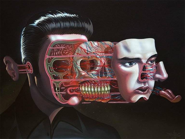 奥地利街头艺术家Nychos创作出精美的艺术品,解剖着名人物和文化偶像。