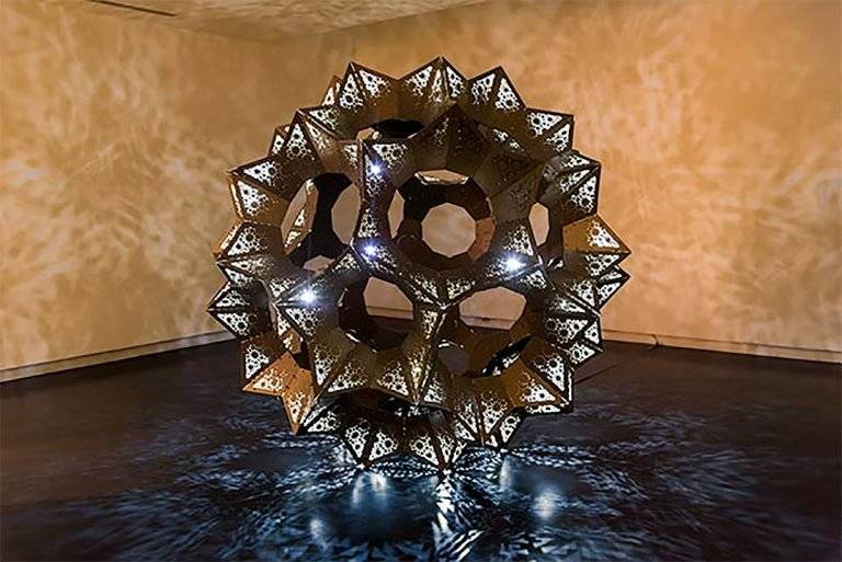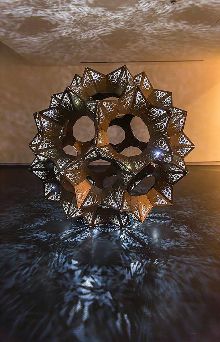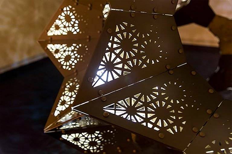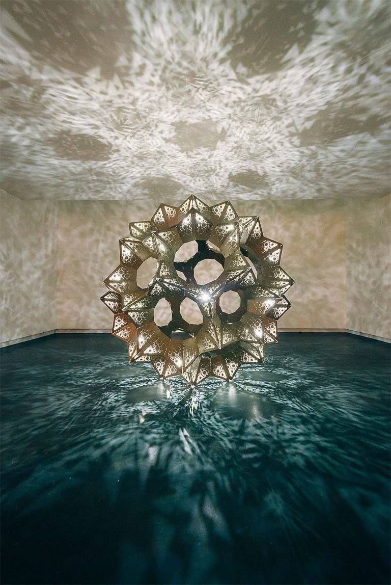 由伦敦的集体玩具工作室创建,< In Bloom’是一个华丽的星 - 几何雕塑和灯光装置灵感来自复杂形式的星形多面体,这是通过扩展给定多面体的面平面以形成新图形来构建新几何体的过程。
