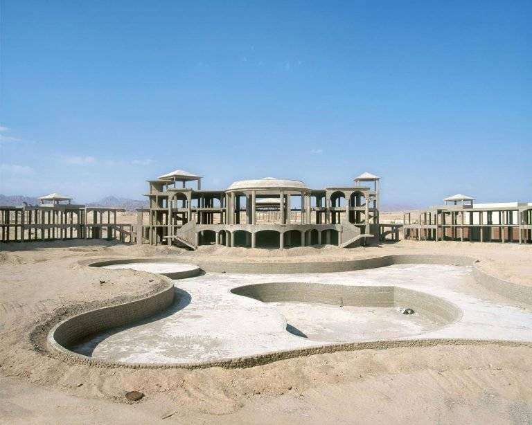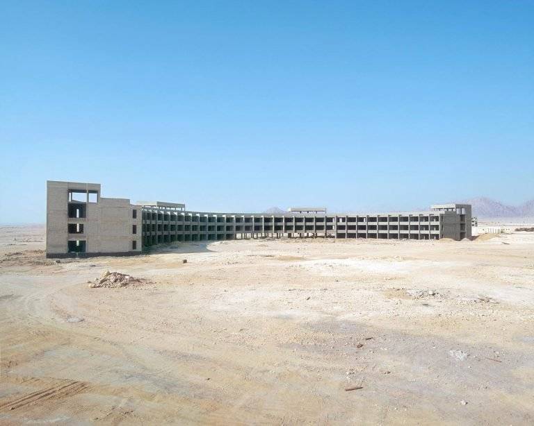 &lsquo西奈酒店’是由德国艺术家Sabine Haubitz和Stefanie Zoche拍摄的一个摄影项目,记录了埃及沙漠中被遗弃的酒店项目。