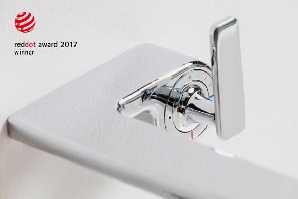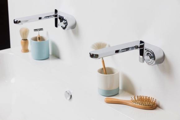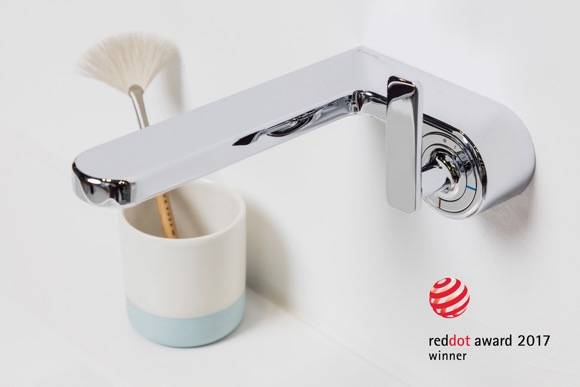 这款造型与众不同的水龙头改变了我们对水龙头开关与出水口的传统认知,伸出来的出水口,竖直旋拧的冷热水开关,特立独行,独具一格。