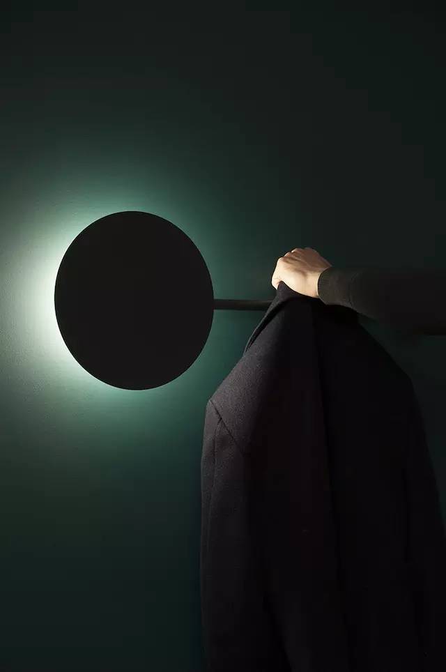 当壁灯和衣架结合在一起,会诞生怎样的设计?最近,设计工作室 Goula/Figuera Studio 和灯饰公司 Faro Barcelona 联手打造了这款名为 Han 的壁灯,它由一个隐藏在圆形面板后的 LED 灯源和水平线上的四个衣钩组成,以一种非常简洁的方式在两种功能间取得了平衡。点亮之后,Han 的灯光也不会让人觉得刺眼,看起来颇有一种星际图的感觉。