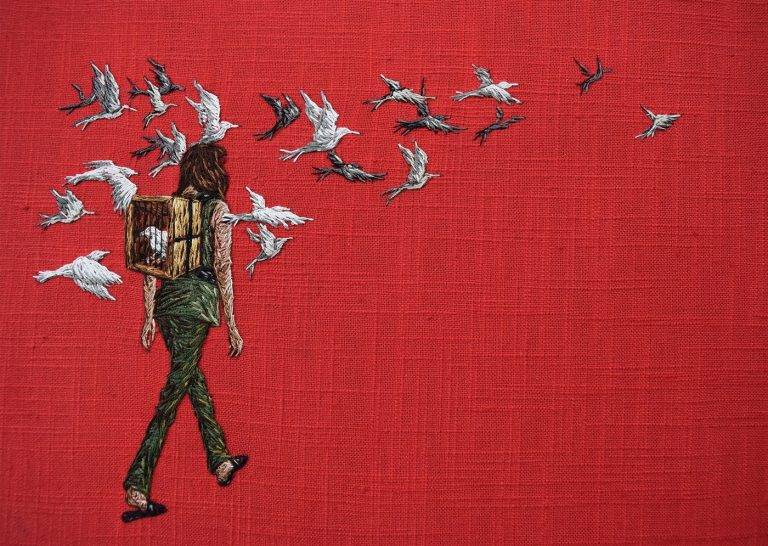 洛杉矶的艺术家米歇尔王国在她的小型绣花作品中探索心理景观。