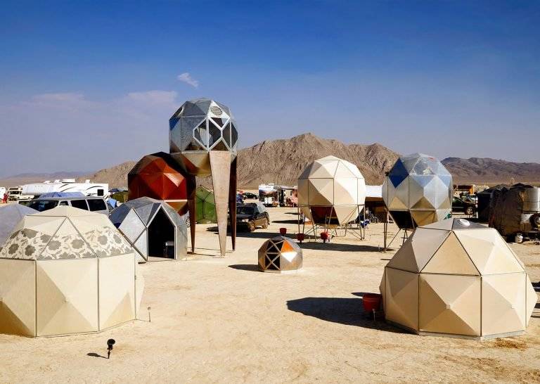 法国摄影师Philippe Glade花费数十年的时间捕捉内华达沙漠中为标志性的Burning Man艺术节筹集的各种帐篷和建筑物。