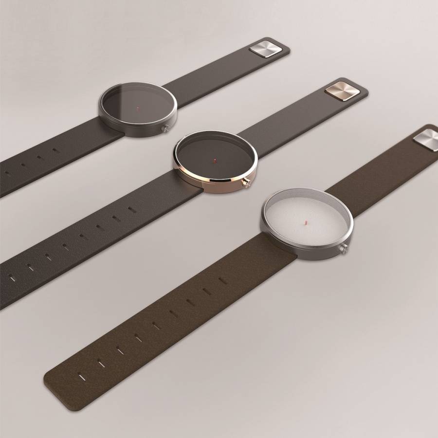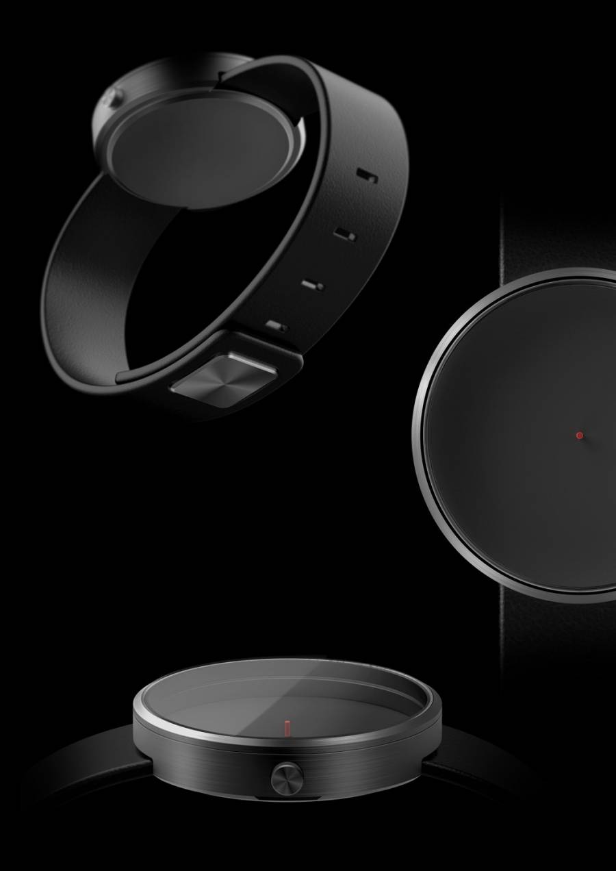 V-Watch是一款可以用光影来标示时间的概念手表。表盘上只有中心圆柱,具体时间要依靠表环上的小灯照射产生的阴影才可以看到。