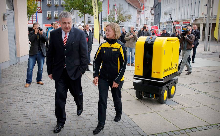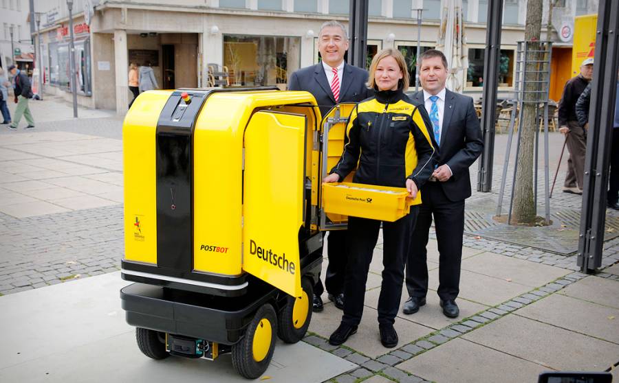 为了减轻快递员的负担,并能更容易分发包裹,DHL推出了一款快递机器人PostBOT。据介绍,PostBOT机器人高度约为150厘米,能以高达3.7英里/小时的速度前行,可以容纳重达约330磅的包裹。传感器有助于机器人在城市周围避开障碍物,并能沿着路线安全地跟着快递员。