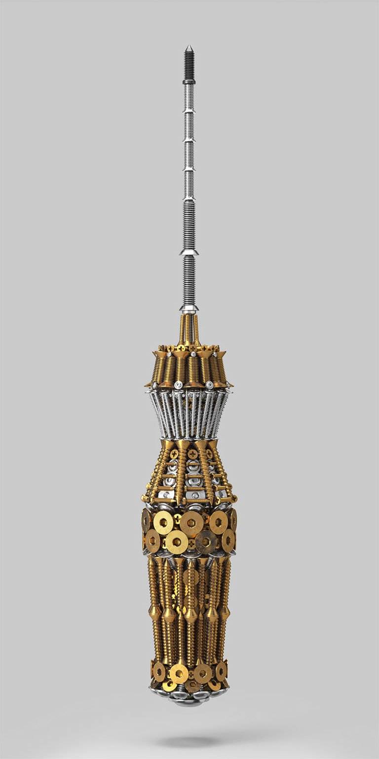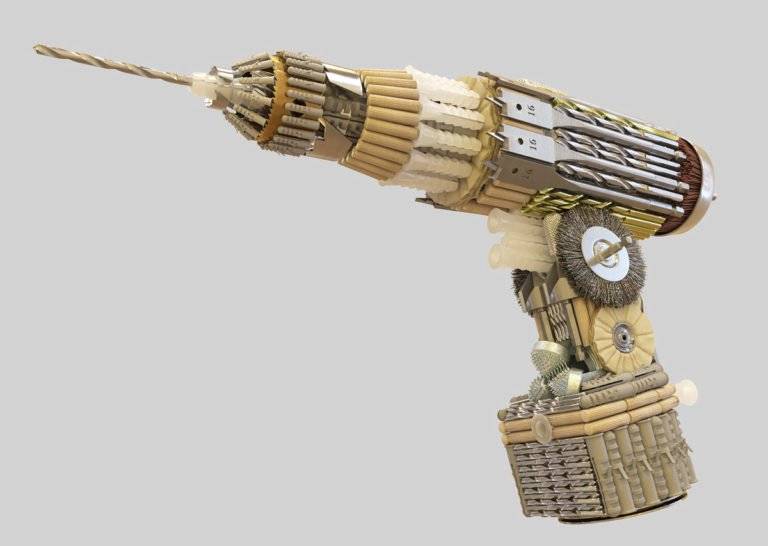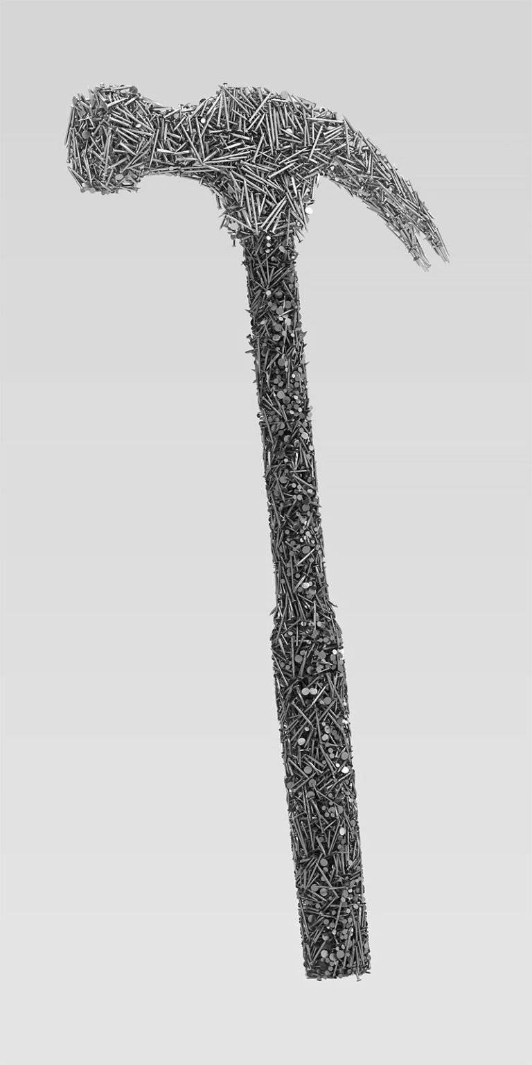 西班牙插画师Luis de la Barrera-Montenegro创造了这些有趣的思维弯曲的艺术作品,其中包含通常与之相互作用的材料 - 即由钉子制成的锤子,由螺钉等制成的螺丝刀构建的工具。