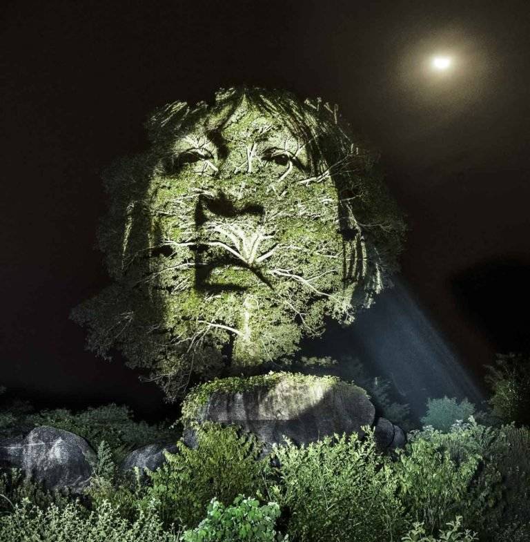 为了提请注意滥伐森林,法国摄影师Philippe Echaroux拍摄了一系列照片,展示了投影到亚马逊雨林树木上的土着巴西人的肖像。
