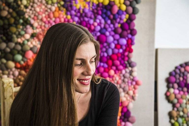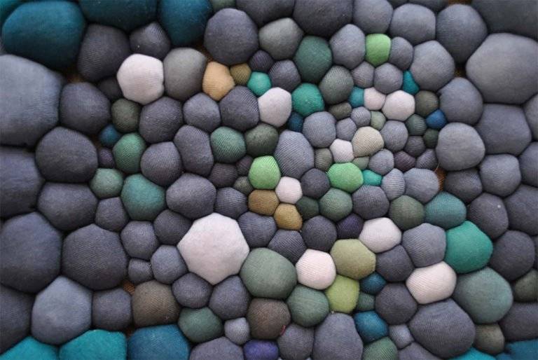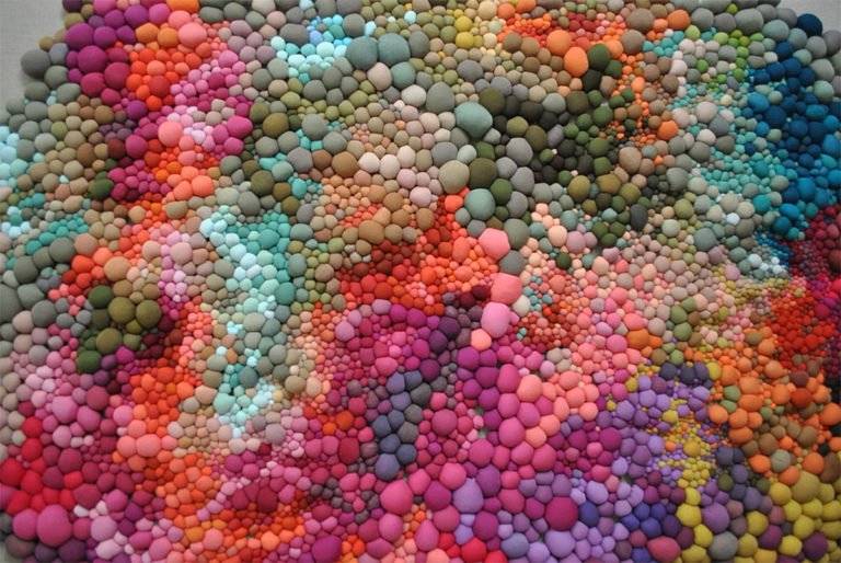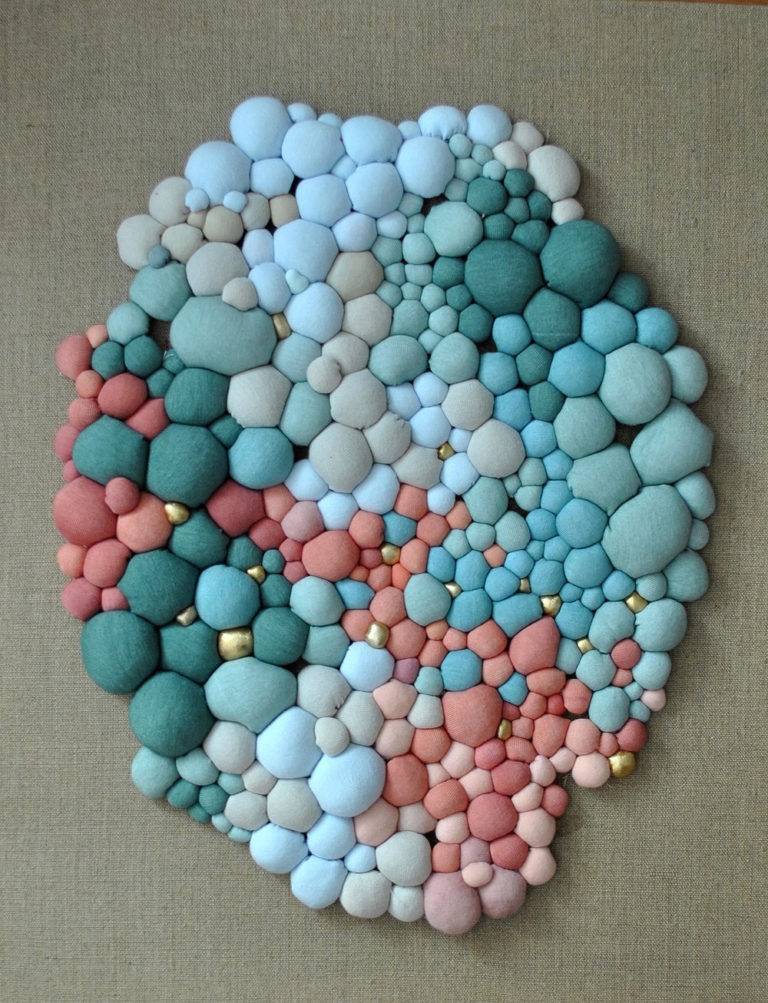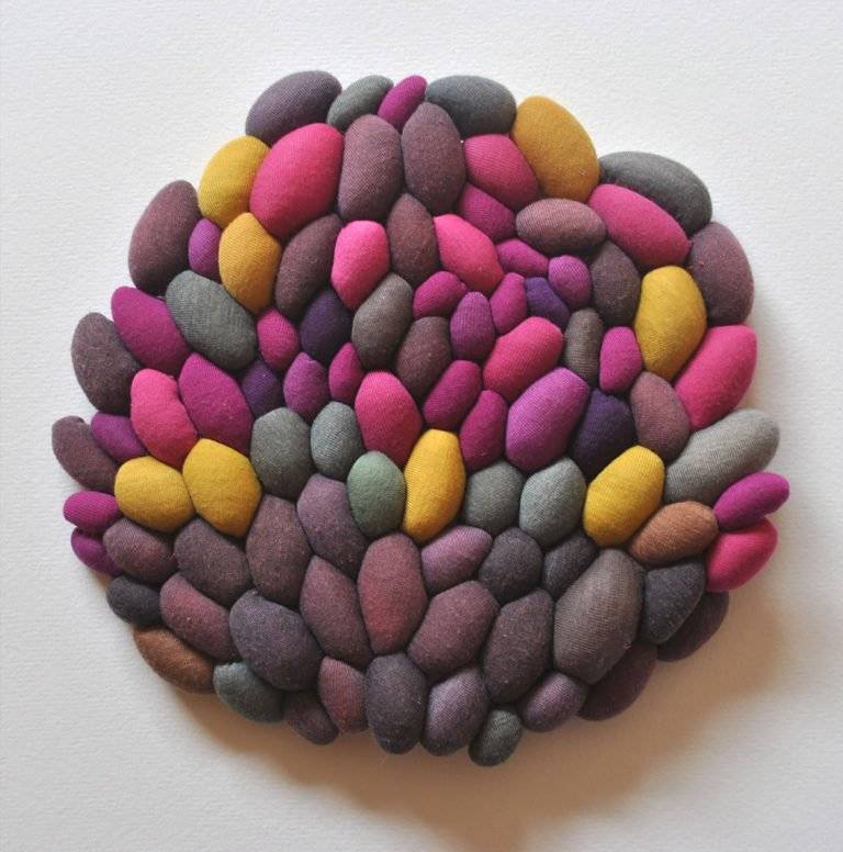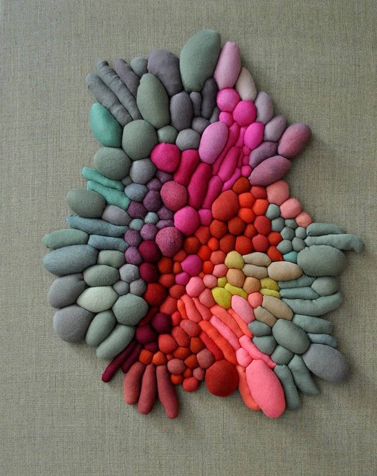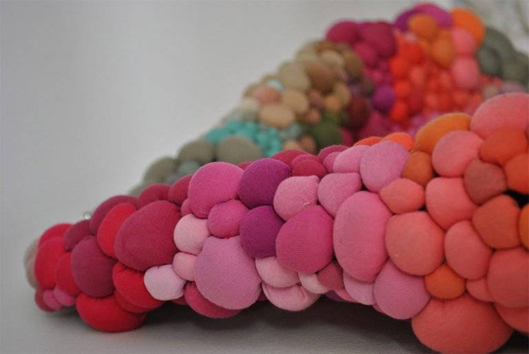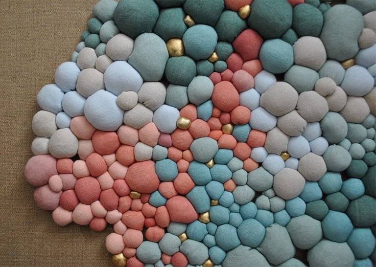 智利艺术家Serena Garcia Dalla Venezia通过手工缝制创造出复杂的纺织品雕塑,并组合了多个由面料制成的球。