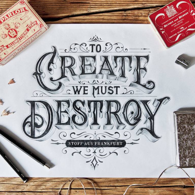 德国刻字艺术家和平面设计师托比亚斯·索尔(Tobias Saul)开始使用笔和纸进行所有的华丽刻字工作,然后再移动到计算机进行最终的数字化触摸。
