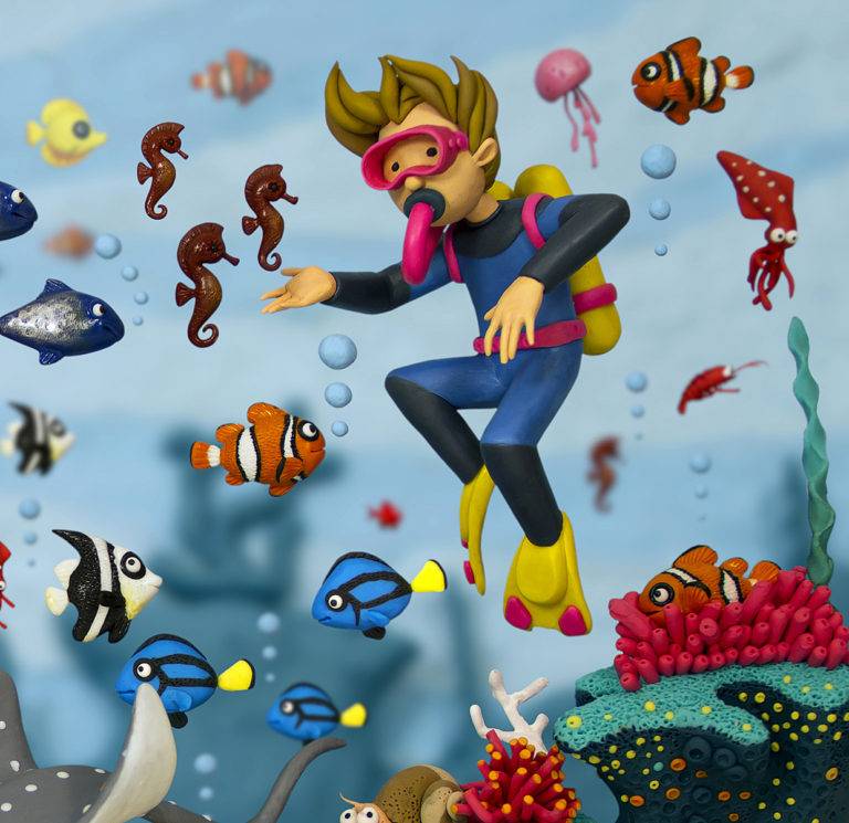 都柏林的插画和二维动画师Fernanda Valverde工艺品这些古怪的人物和用橡皮泥和其他材料的情景。