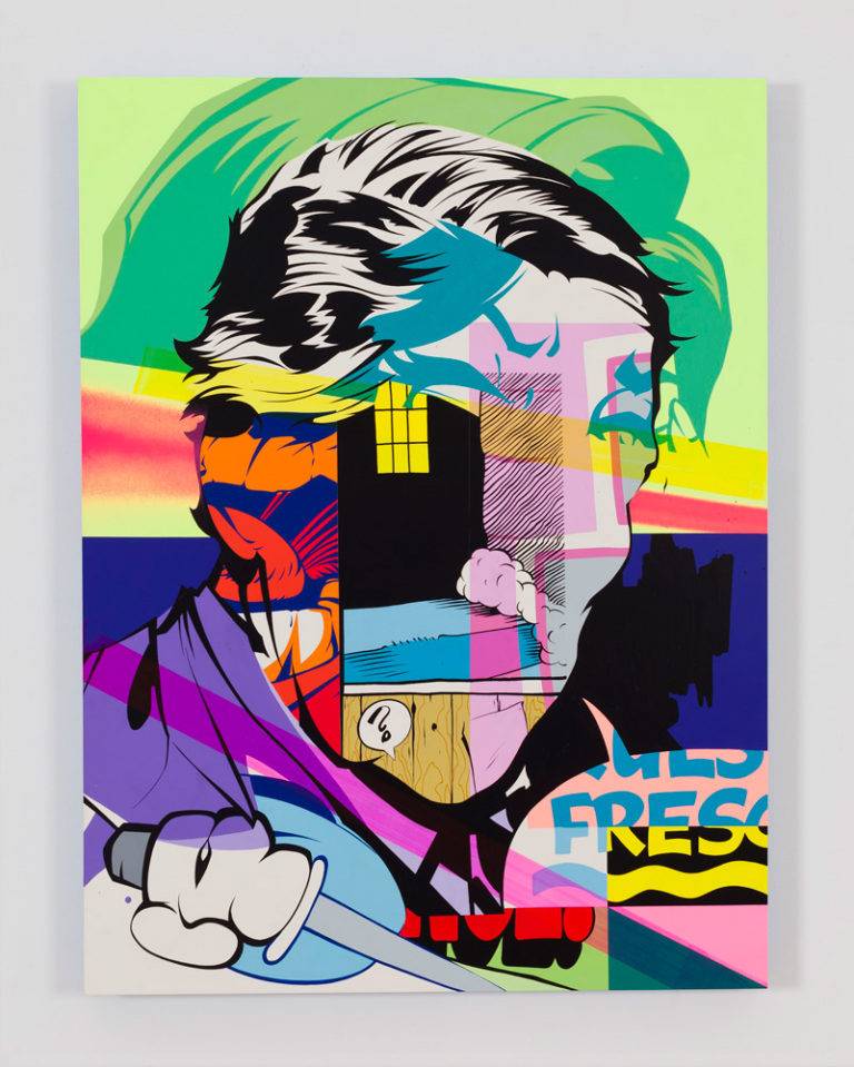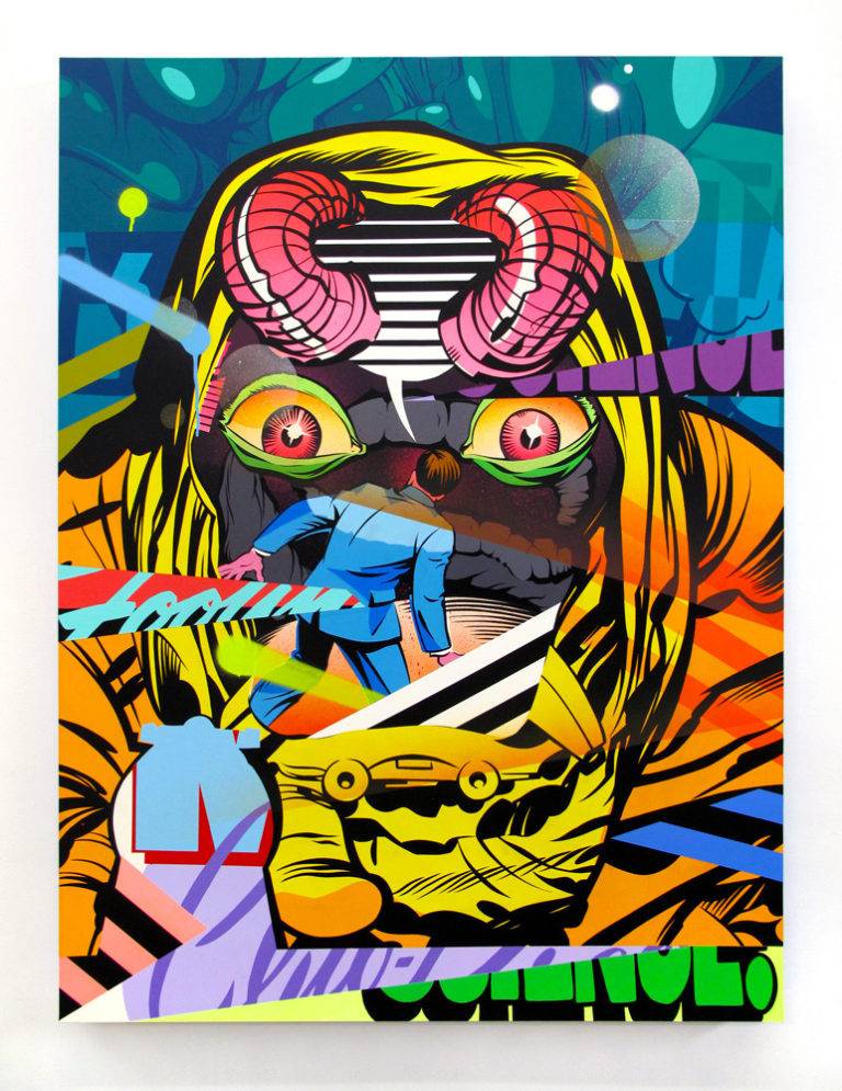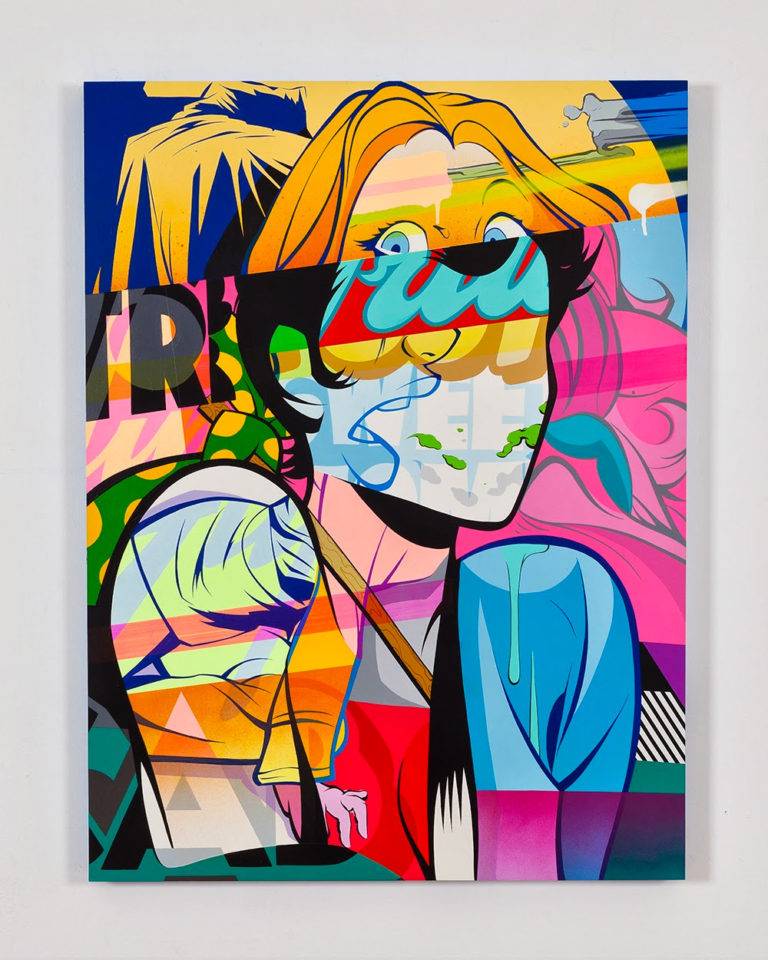 芝加哥艺术家约旦镍,又名姿态,创造杰出的混合媒体绘画和大型,手绘壁画。