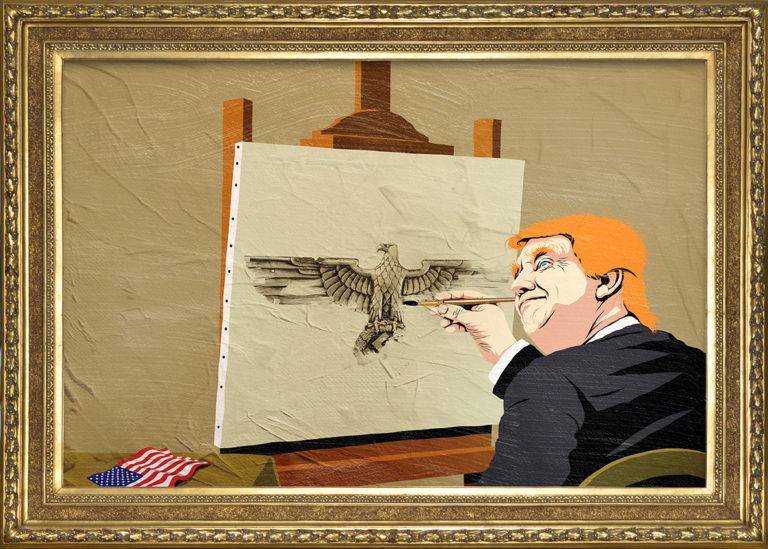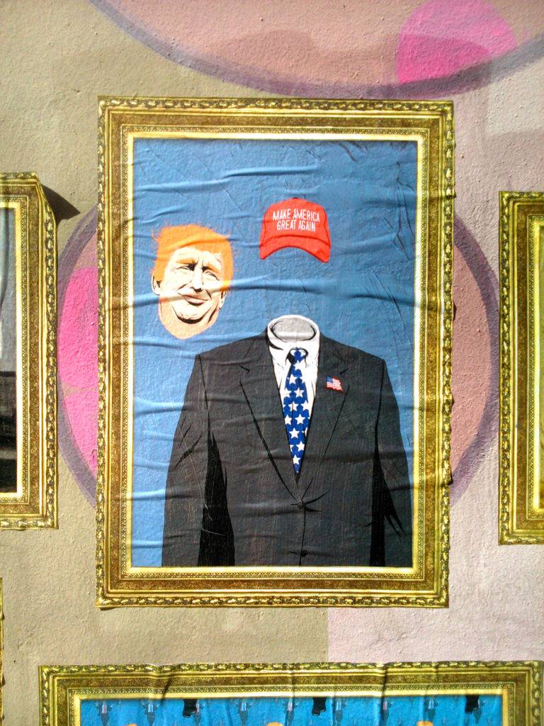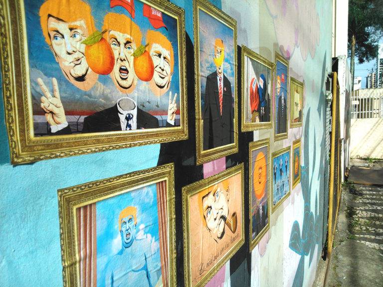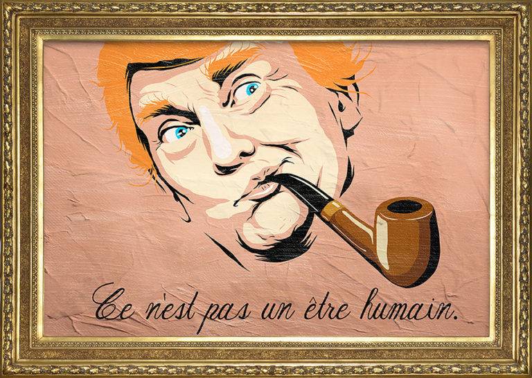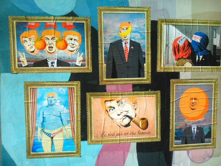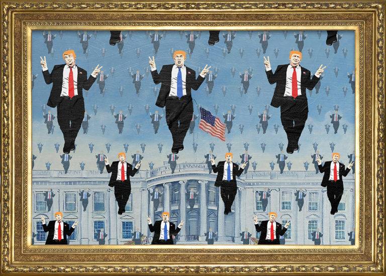 定义超现实,是特朗普的总统竞选# 8217;2016,巴西艺术家Butcher Billy制作的这个令人印象深刻的街头艺术系列,从比利时超现实主义绘画的灵感图标任é马格里特(加少许橙)。