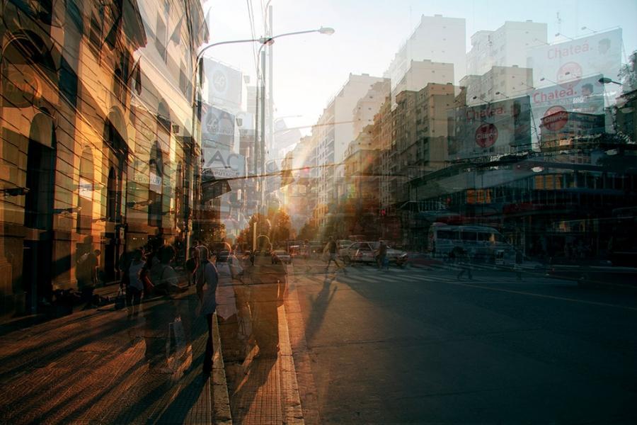 意大利摄影师Alessio Trerotoli创造了这个令人印象深刻的系列抽象、图像叠加一个人系列叫# 8220;城市的旋律与# 8221;。