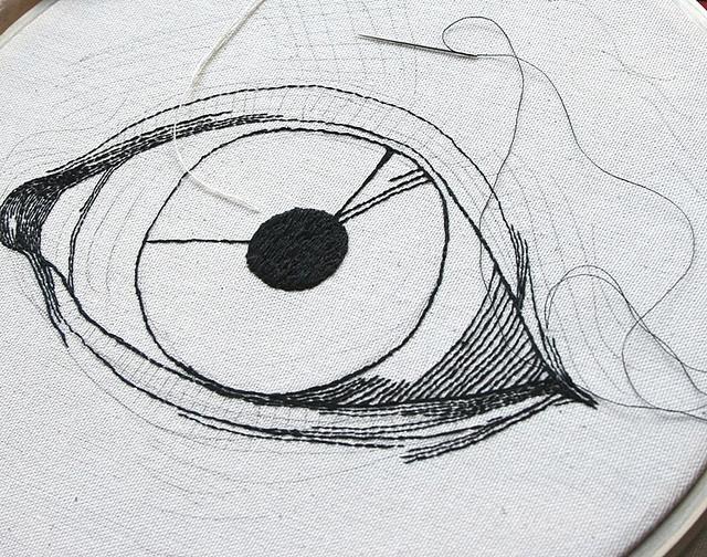 手工缝合的眼睛艺术作品由Sam P. Gibson