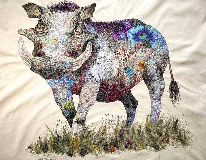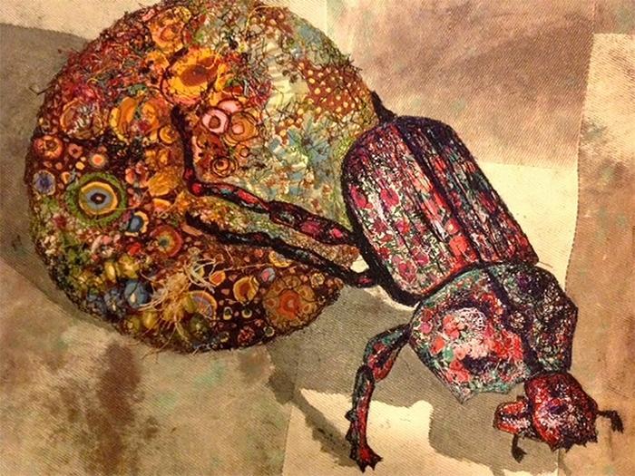 英国艺术家索菲站创建野生动物和昆虫的充满活力的纺织学院。