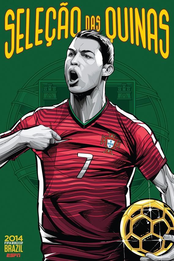 ESPN最近委托巴西艺术家和设计师Cristiano Siqueira创建的国际足联2014世界杯庆祝活动的一系列独特设计的海报。