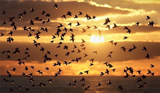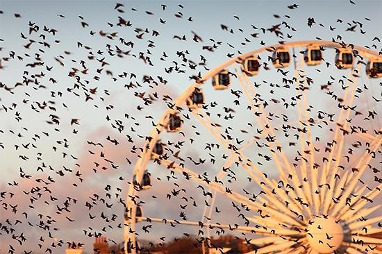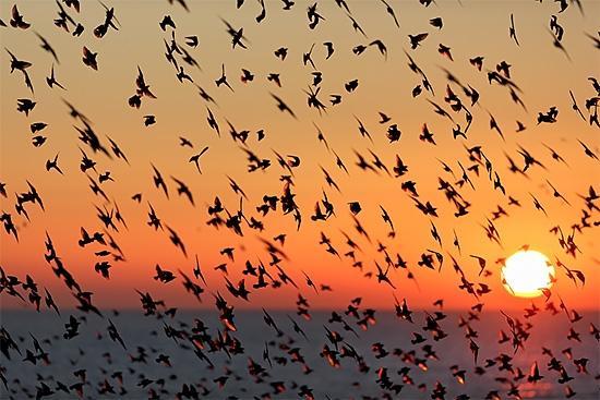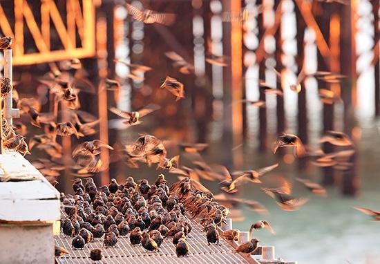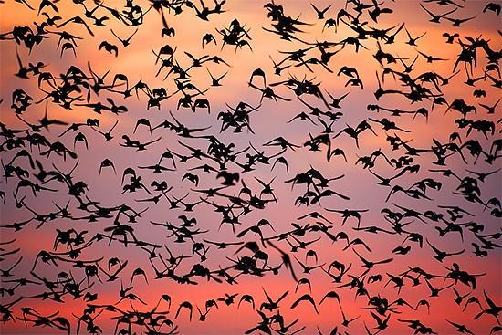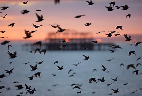 自由的野生动物和风景摄影师Alan MacKenzie捕捉椋鸟低语在美丽的布赖顿奇观,英国。