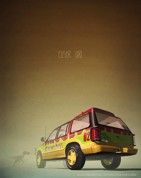 法国艺术家Nicolas Bannister创作了这套酷炫海报著名汽车从电视和电影,包括捉鬼敢死队,侏罗纪公园,回到未来和更多。