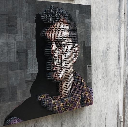 总部设在加利福尼亚的艺术家Andrew Myers回来与他的独特的肖像用数千螺丝钉。