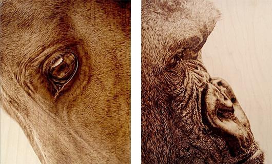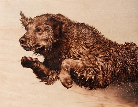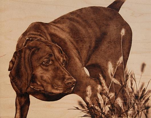 Julie Bender是一个自学成才的烙画大师,一个技术,包括使用一个加热实现焦材料如木材、纸张、皮革。