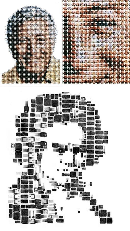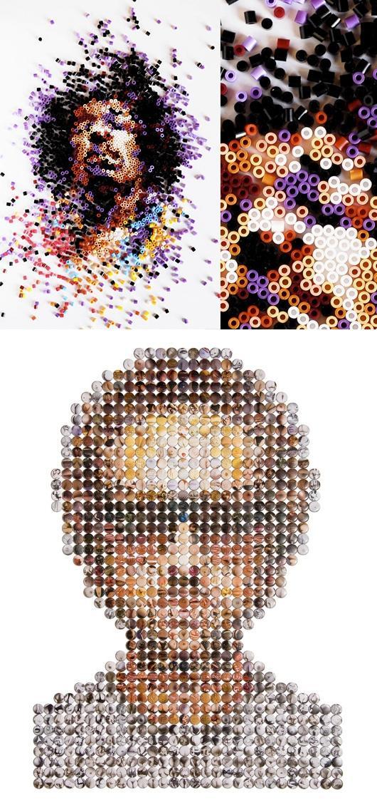英国艺术家伊恩·赖特用各种不同材料制作像素肖像。