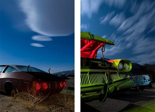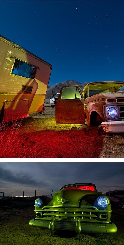 自上世纪70年代特洛伊派瓦一直探索的荒凉的乡间小道美国西南部。1989他开始以美丽的夜景拍摄地点,废弃的垃圾场。