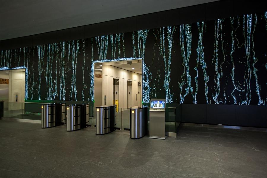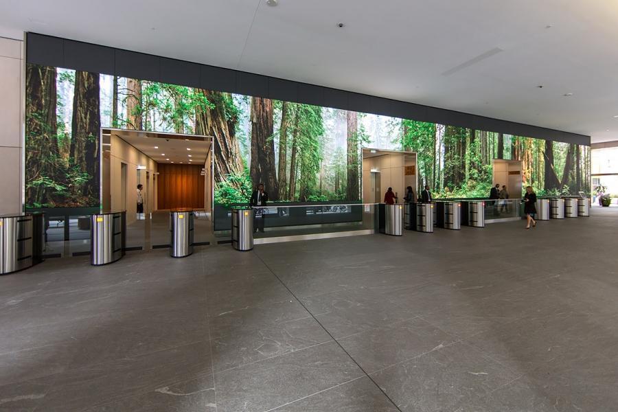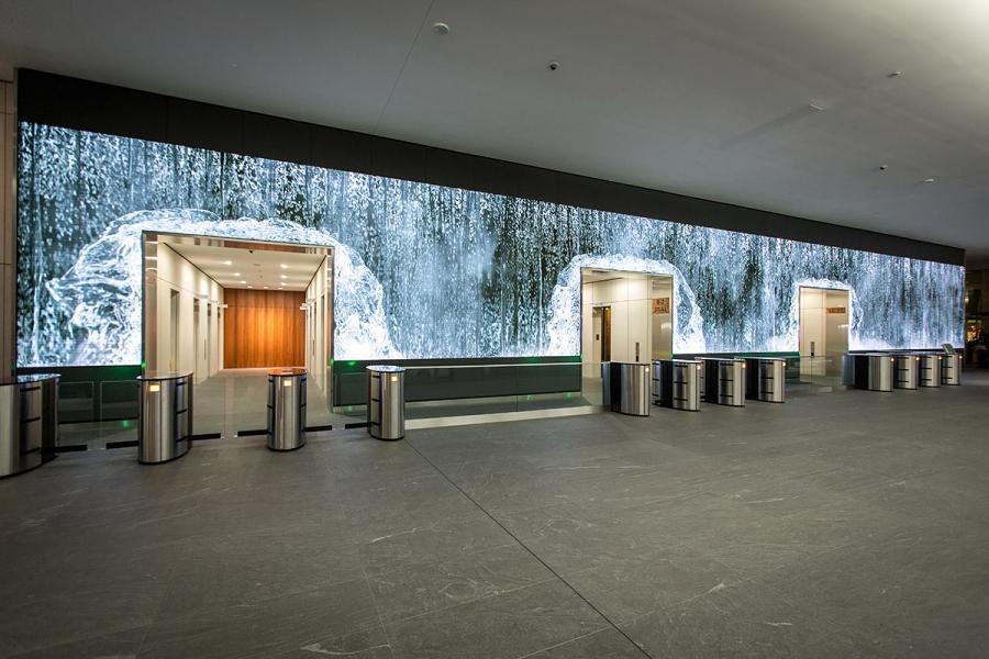 三藩工作室暗箱委托Salesforce创建这个巨大的LED其旗舰办公大厅视频墙的安装。