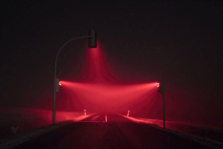 摄影师卢卡斯·齐默尔曼(Lucas Zimmermann)在德国魏玛附近的夜晚捕获了迷人的交通信号灯。