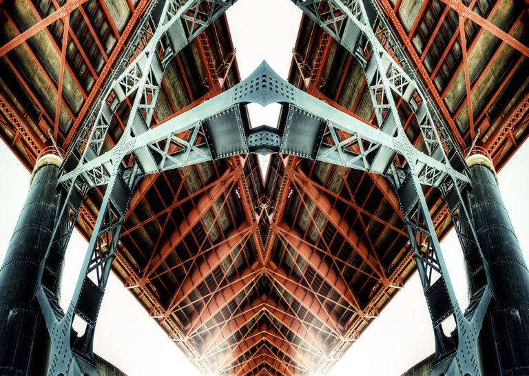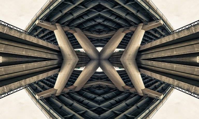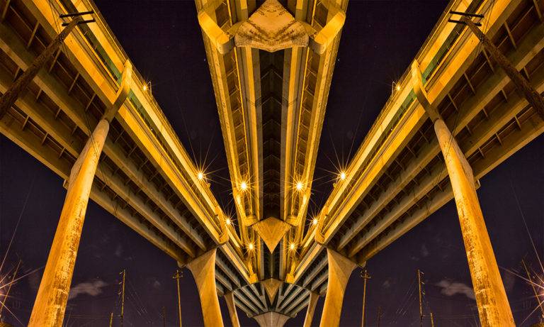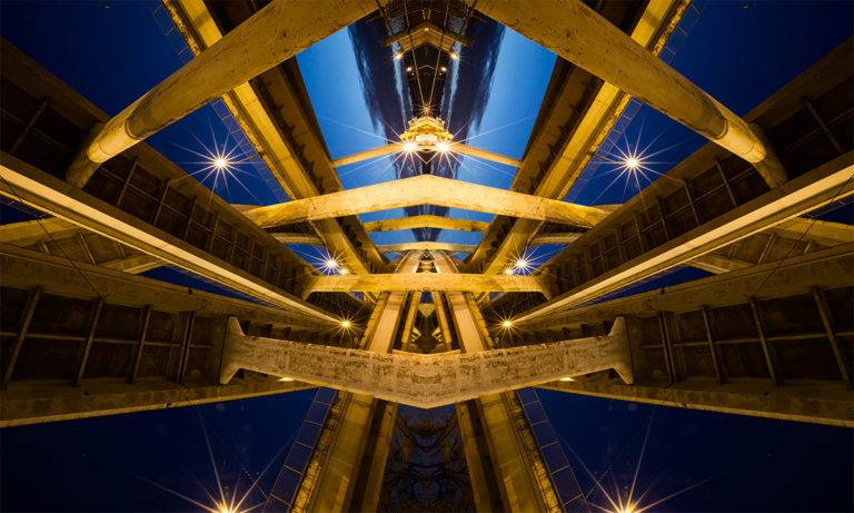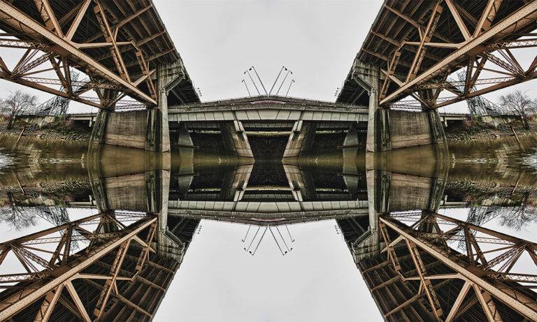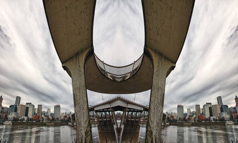 美国摄影师麦克劳克林(David McLaughlin)在他最新的“Roadschachs”系列作品中,以俄勒冈州波特兰市发现的桥梁镜像。