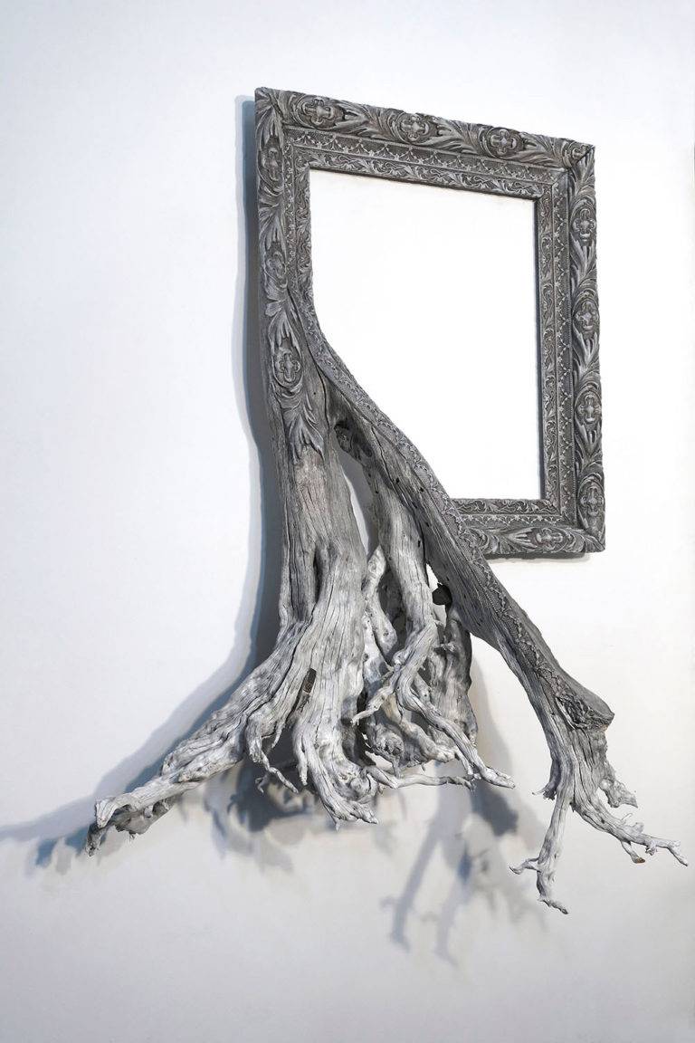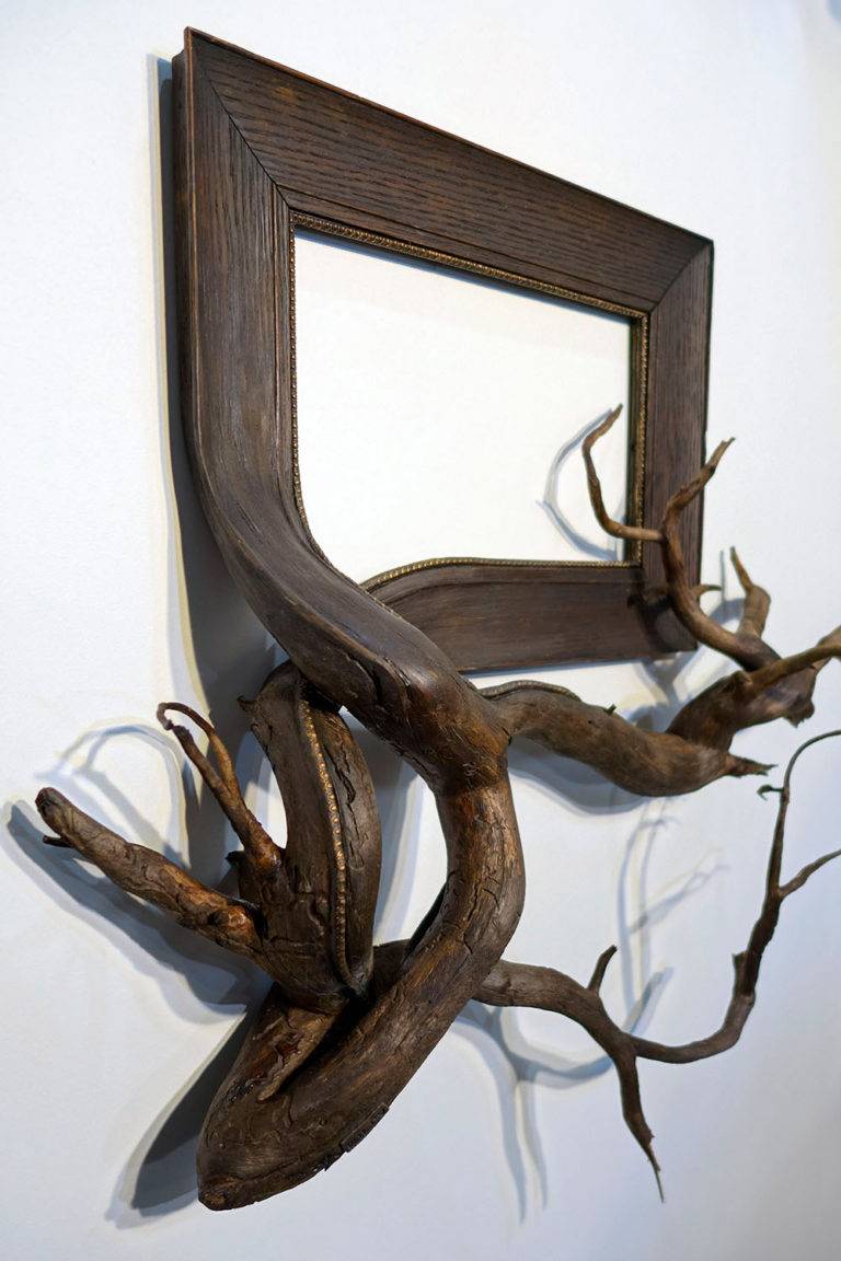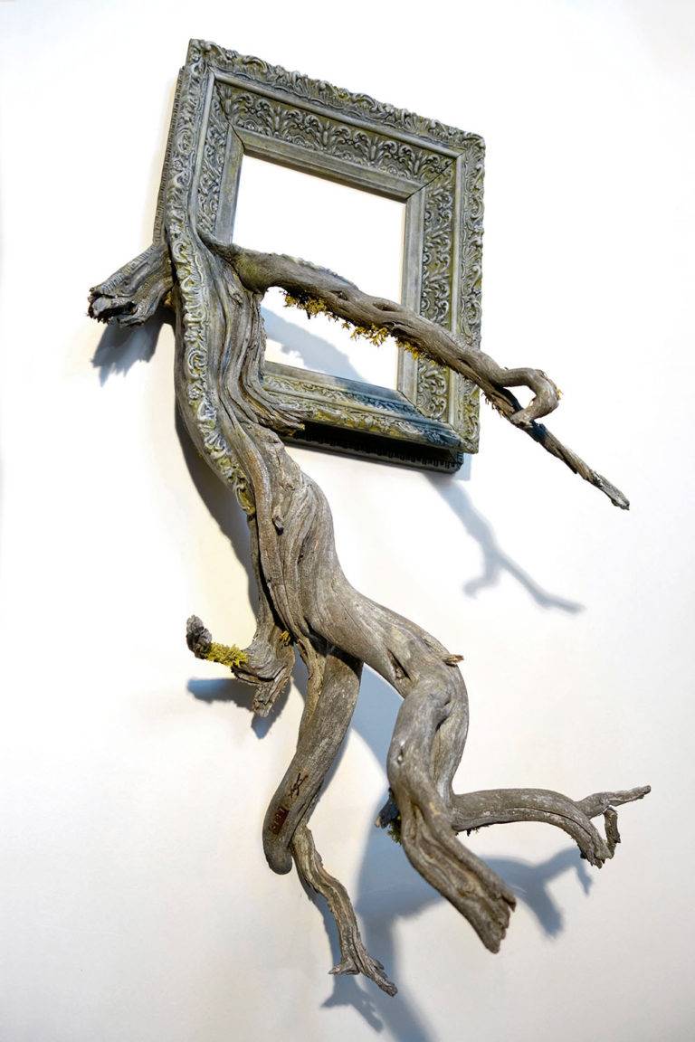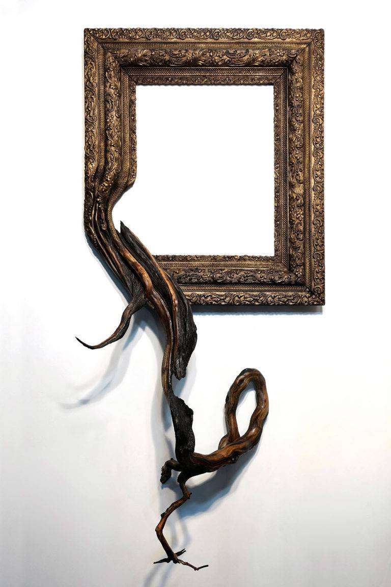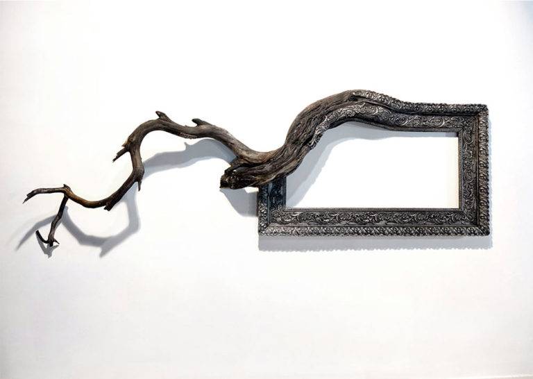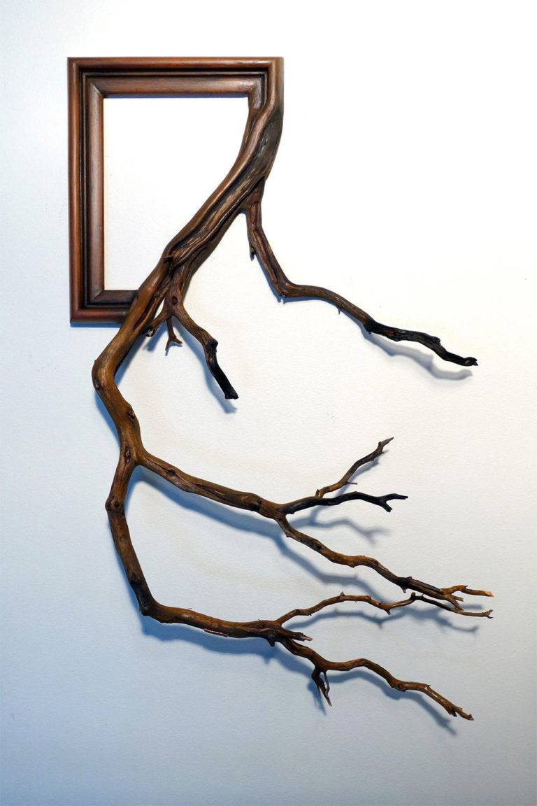 创造独特的艺术品Darryl Cox将华丽的复古画面与美国中部俄勒冈州的森林中发现的真实树枝结合在一起。