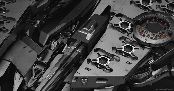 Vitaly Bulgarov,美国概念插画师,现居加州,擅长繁复细致的机械风格角色设定,他的客户包括暴雪娱乐、工业光魔、派拉蒙、英特尔等,曾参与的电影作品包括《变形金刚4》、《机械战警》,游戏包括《星际争霸II》、《暗黑破坏神3》等。