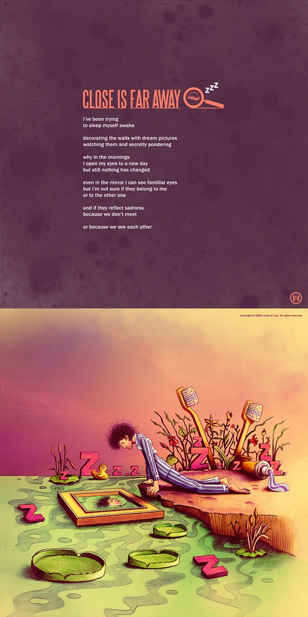 Heart On Stage是一个结合插画与诗歌的艺术项目,来自芬兰插画师Lenna Yliportimo及巴西插画师Luiz Risi。